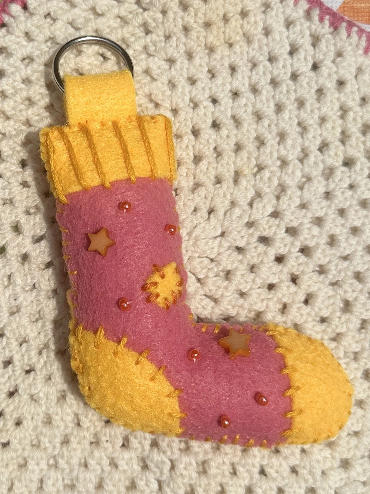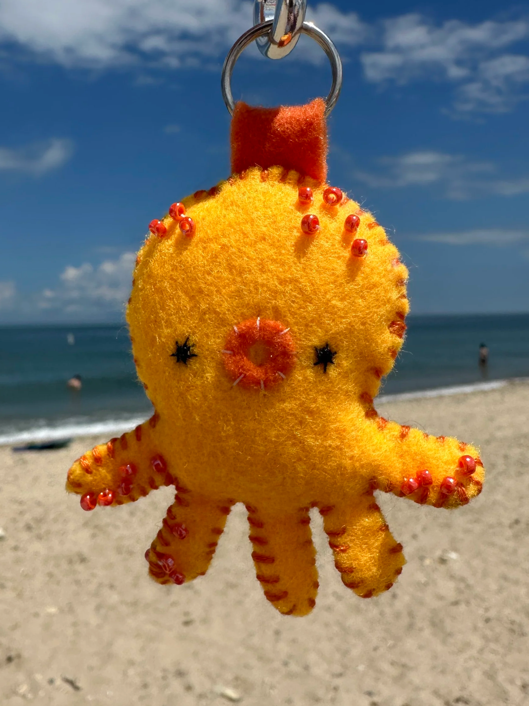 These keychains are 100% hand sewn, beaded, and designed by me using felt and embroidery thread.